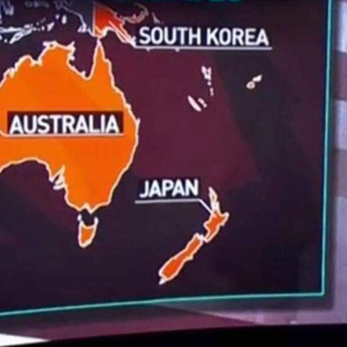 Russia Today puts Japan on the map, where New Zealand should be